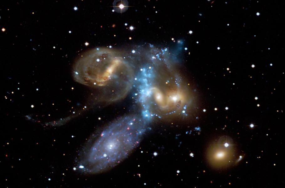 Nedávno si tuto skupinu galaxií vzal na mušku čínský radioteleskop s největší anténou na světě, čili FAST (Five-hundred-meter Aperture Spherical Telescope), a přinesl zajímavý objev. Kolem galaxií Stephanova kvintetu se rozkládá monumentální oblak atomárního vodíku, který je doposud největší strukturou tohoto typu, jaké jsme zatím ve vesmíru pozorovali.