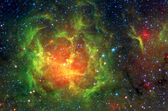 Hvězdná porodnice s označením Sh2-284 je rozsáhlá oblast obsahující značné množství plynu a prachu. Její nejjasnější část, zachycená na uvedeném snímku, má průměr asi 150 světelných let. Nachází se asi 15 tisíc světelných let od Země a na obloze ji lze nalézt v souhvězdí Jednorožce.