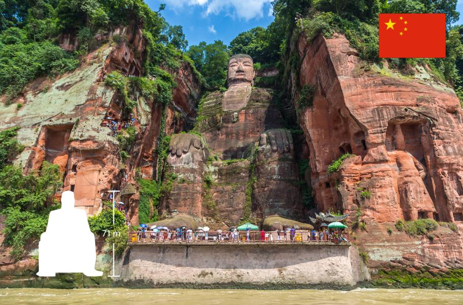 Náboženské postavy se často stávají motivem obřích soch a nejinak tomu je i v tomto případě. Tzv. Lešanský Buddha je vytesán ve skále na soutoku tří řek poblíž čínského města Le-šan a dosahuje výšky 71 m. Má vskutku dlouhou historii, protože jej dokončili už v roce 803. Od roku 1996 figuruje na seznamu UNESCO.