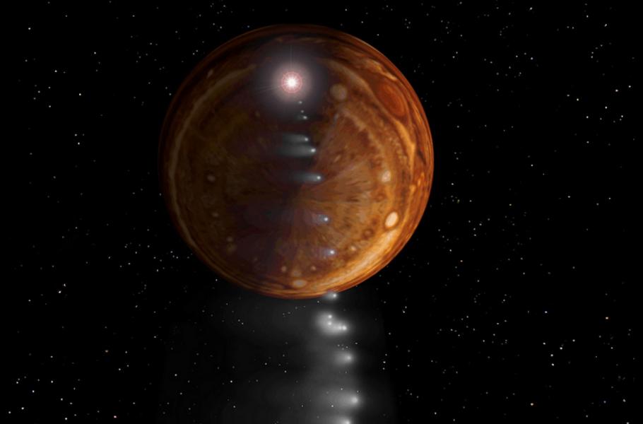 Kometu Shoemaker-Levy 9 roztrhaly slapové síly Jupitera na kusy a ty následně dopadaly do atmosféry plynného obra. Přes dvacet úlomků, s rozměry od 0,5 do 3 km, zmizelo v průběhu sedmi dní v oblacích planety. (ilustrace: Wikimedia Commons, NASA,JPL, D. Seal, CC BY-SA 4.0)