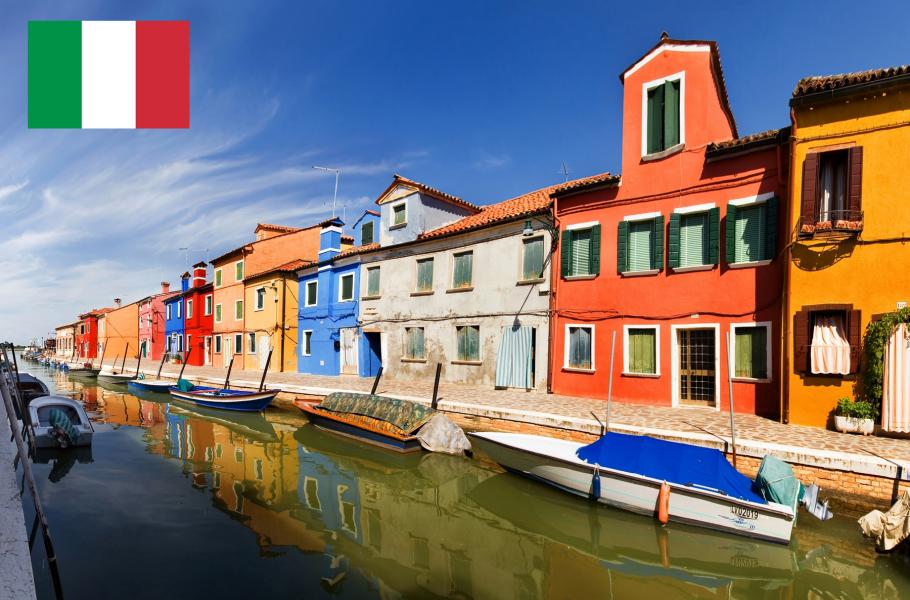Pokud jsou pro vás Benátky až příliš romantické, co asi řeknete na blízkou vesnici Burano? Ta má sice méně honosných paláců, ale o to více „obyčejných“ domů, samozřejmě řádně barevných. Barvy sloužily od počátku jako orientační systém a musela je dokonce schvalovat místní radnice. Kromě barev se Burano pyšní také nakloněnou zvonicí kostela, a protože se nachází ve stejné mělké laguně jako Benátky, nechybí tu ani kanály s gondolami.