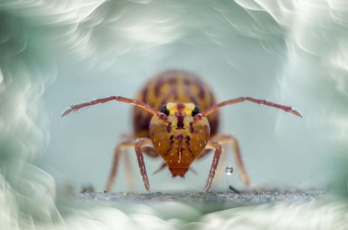 Rastrovací elektronový mikroskop dokáže prostřednictvím pohyblivého svazku elektronů zachytit nepatrné detaily. Titěrný hmyz se proto na výsledných snímcích může jevit jako hrozivé monstrum.