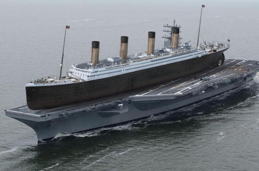 Americká letadlová loď U.S.S. Ronald Reagan měří na délku 332,8 metru. V pohodě by se na ní vešel například Titanic.