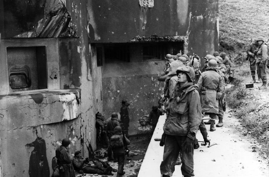 Dělostřelecký srub B8 tvrze Hackenberg po těžkých bojích, kdy jej v roce 1944 dobyli američtí vojáci. (foto: Wikimedia Commons, NARA, PDM 1.0)