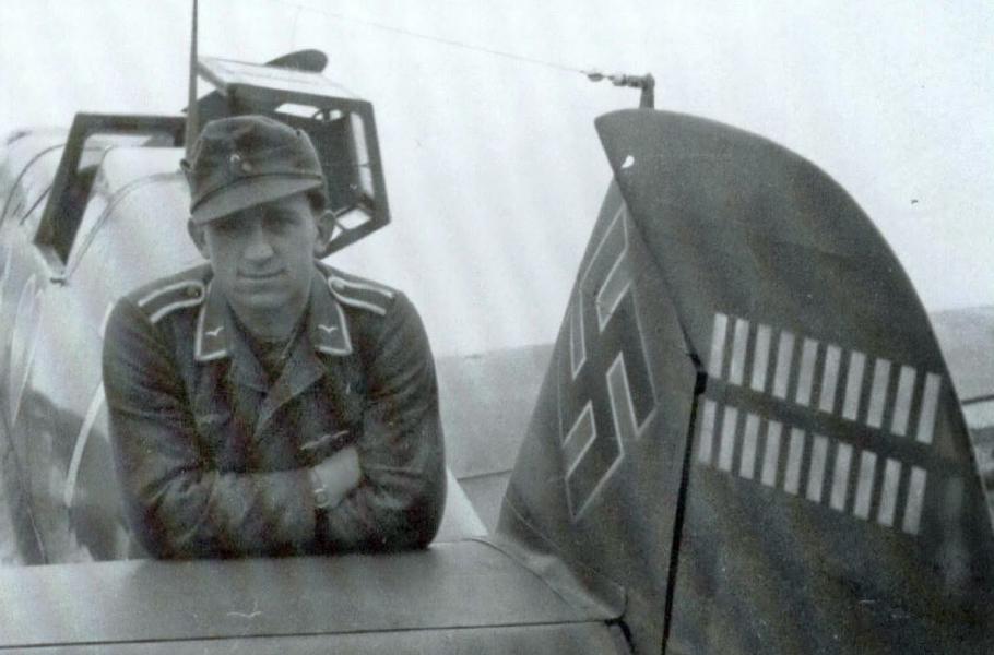 Gerhard Schöpfel póuje u kormidla svého letounu, které nese značky dosažených sestřelů. (foto: internetwar.ru)