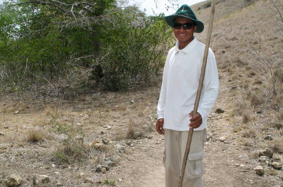 Po procházce palmovým lesem, s dominantními lontary vějířovitými (Borassus flabellifer), které dorůstají výšky kolem 30 metrů, přicházíme na místo zvané Waywaso, což znamená „Voda ibiškového kvetu“. Právě tady jsou v době naší návštěvy nejlepší podmínky pro pozorování varanů v jejich přirozeném prostředí. Kaluže vody v téměř suchém říčním korytu jsou totiž v období s nedostatkem vláhy jediným zdrojem vody pro zvířata obývající tuto část ostrova. Napájí se tu a odpočívají jak vodní buvoli, tak jejich nepřátelé varani. „Ačkoli mnozí považují jejich způsob lovu za zákeřný, dá se říct, že je promyšlený. Zhruba před týdnem pokousali jednoho buvola a teď čekají na jeho smrt. V mezičase už na žádné další zvíře neútočí,“ vysvětluje Josef dnešní relativně idylické soužití buvolů a varanů.