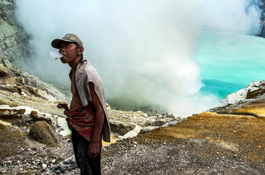 Vulkán Ijen na indonéském ostrově Jáva představuje unikátní přírodní fenomén, který obdivují stovky turistů denně. Odvrácenou stranou mince je tamní manuální těžba síry, za niž horníci tvrdě platí zničeným zdravím: Průměrně se dožívají padesáti let. Síra se v místě oficiálně těží od roku 1968 a od té doby tam již zemřelo přes sedmdesát horníků – často na udušení toxickými výpary. Protože se však v regionu mnoho jiné práce nenabízí, přijímají muži svůj úděl s klidem a úsměvem.