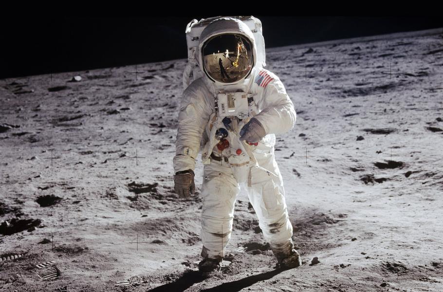 Při misi Apollo 11 lidé poprvé stanuli na povrchu Měsíce. Došlo k tomu 20. července 1969. (foto: Wikimedia Commons, NASA/Neil A. Armstrong, PDM 1.0)