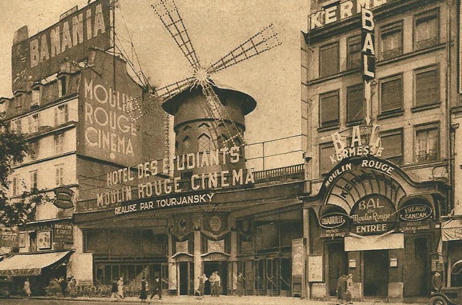 Dobová pohlednice zachycující Moulin Rouge v roce 1936. (foto: Wikimedia Commons, PDM 1.0)