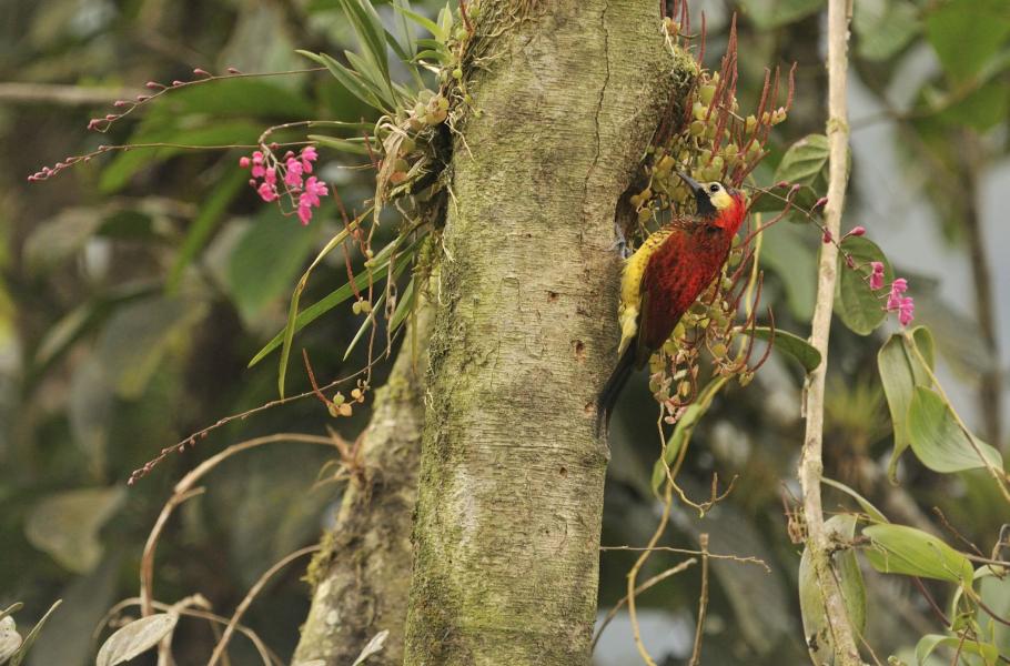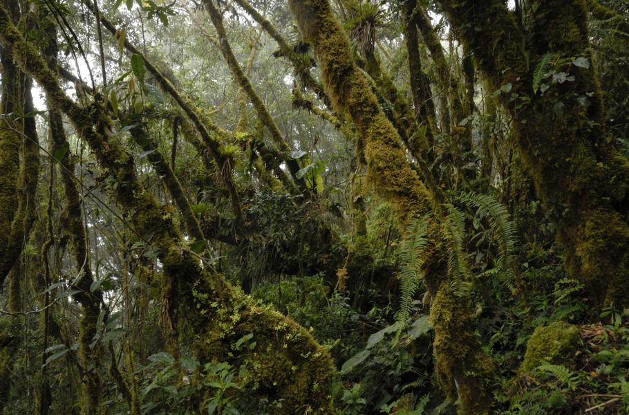 Navzdory tomu, že lesy na tomto a následujícím snímku dělí jen 15 km, jsou rozdíly ve vegetaci i ptačí diverzitě jen stěží přehlédnutelné. Během třídenního průzkumu na každé z lokalit nám horský les v rezervaci Wayqecha (na tomto snímku) odhalil 95 a blahovičníková plantáž u obce Paucartambo (další fotografie) 22 druhů ptáků.
