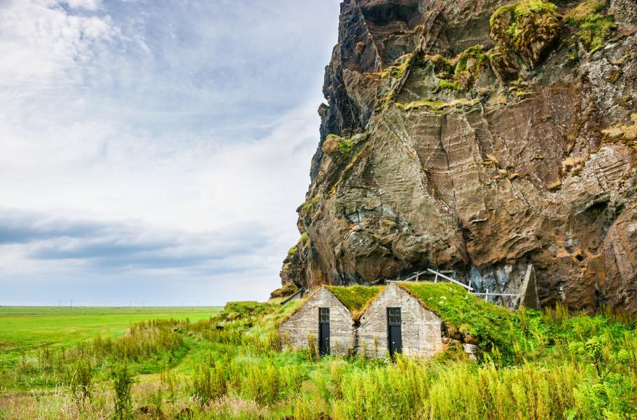 Tradiční islandské kamenné domy „torfbeir“ byly logickou reakcí na nepříznivé klima a nedostatek kvalitního stavebního dřeva. Tlusté kamenné stěny, střechy porostlé mechem a trávou a malá okna zajistily přiměřený komfort i v kruté zimě.