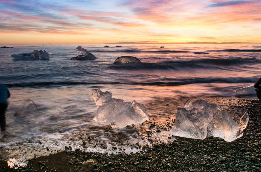 Kam až oko dohlédne, vine se černá pláž posetá lesknoucími se kusy ledu, které ve světle září jako obrovské diamanty. Islandská pláž Breiðamerkursandur připomíná obrazy z cizích světů…