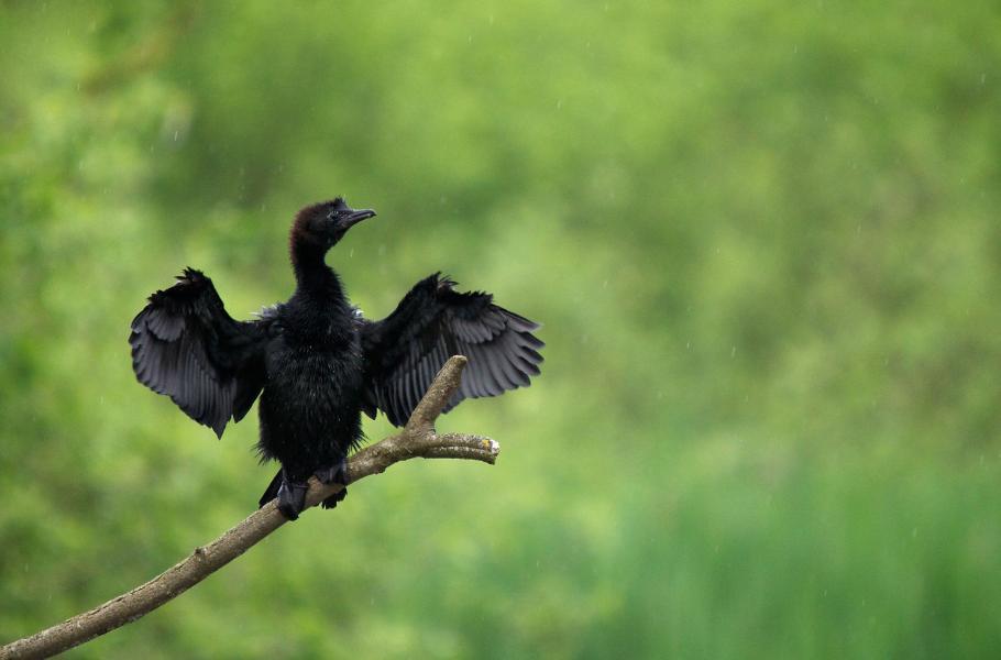 Posledním biotopem, který jsme navštěvovali, byly lužní lesy v Punte Alberete. Tato lokalita nabízí přinejmenším počátkem května řadu působivých pohledů do zatopených lesů. My jsme se sem ovšem vydali především za již zmíněnými kormorány malými, na které jinde v západní Evropě s velkou pravděpodobností nenarazíte. Správa parku si je výjimečnosti těchto šikovných potápěčů jistě dobře vědoma, protože lidští pozorovatelé jsou zde od vybraných vodních ploch oddělení ohradou. Je zde ovšem vybudován pevný pozorovací kryt, odhadem tak pro deset lidí.