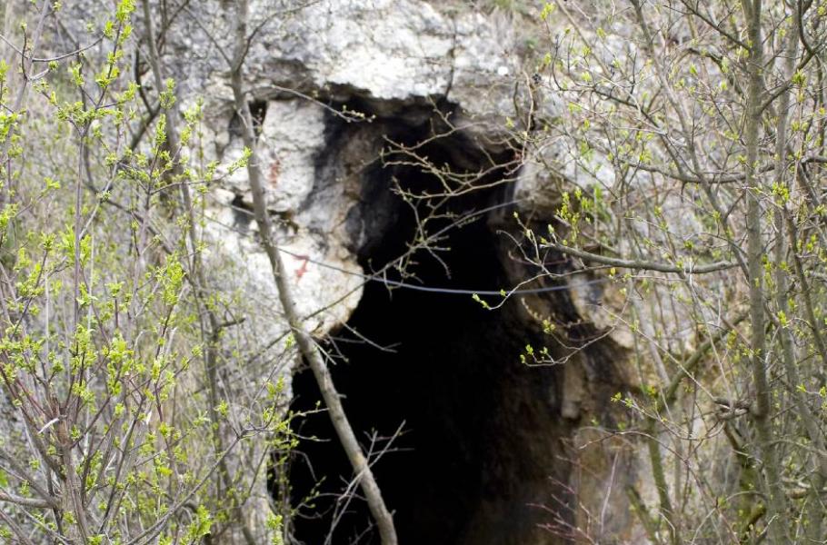 Stránská skála ukrývá ve své hrudi několik puklinových jeskyní i uměle vytvořených štol. V roce 1910 při odstřelu lomové stěny (Stránská skála byla tehdy lomem) se objevila nová prostora právě ve dnech, kdy tu hledal fosilie J. Woldřich, soukromý docent Karlovy univerzity. Nenápadná jeskyňka obsahovala nepřeberné množství velkých kostí. Unikátním nálezem byl především trhák šavlozubého tygra (tehdy první nález severně od Alp vůbec). Objeveny byly však i kosti lvů, hyen, medvědů, slonů, vlků, koní a turů a dokonce i ohniště a opálené kosti. Dnes již víme, že tyto předměty svědčící o přítomnosti člověka, pocházejí z meziledové doby (zvané cromer), jejíž počátek klademe do doby 790 000 let př. n. l. Ke konci tohoto období (asi před 600 000 lety) obývali jeskyni Stránské skály lidé rodu Homo erectus (předchůdci dnešních lidí).