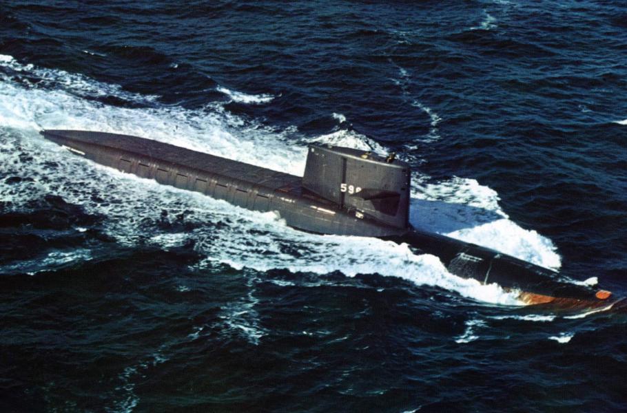 Od roku 1959 zavádělo US Navy do výzbroje ponorky třídy George Washington (na snímku) schopné odpalovat střely Polaris. (foto: Wikimedia Commons, U.S. Navy, PDM 1.0)