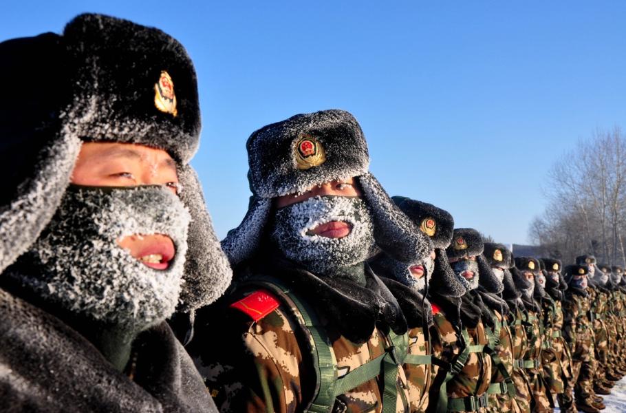 Čínská armáda a policie pořádají každý rok v prosinci a lednu nábor nových členů, aby zjistili, jak krutá zima prověří odolnost nových rekrutů.