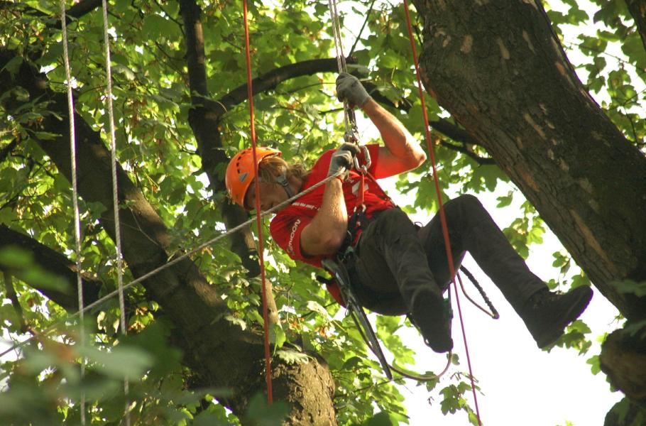 Takto bych to asi neformuloval. Nejčastěji se setkáváme s drobnějšími úrazy, jako jsou řezné rány nebo piliny v očích. Arboristé padají ze stromů velmi zřídka. Větším rizikem je, že spadne sám ošetřovaný strom. Co se týče zásad bezpečnosti, je důležité si pravidelně kontrolovat vybavení, což obvykle provádíme na stromolezeckých závodech.