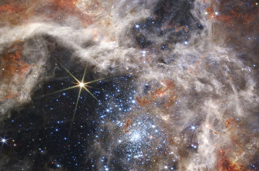 Mlhovina Tarantule se nachází ve vzdálenosti pouhých 161 tisíc světelných let v galaxii Velké Magellanovo mračno. Je největší a současně i nejjasnější oblastí, kde se v nejbližších galaxiích rodí hvězdy. Astronomové proto zaměřili na mlhovinu rovnou tři z Webbových infračervených přístrojů s vysokým rozlišením.