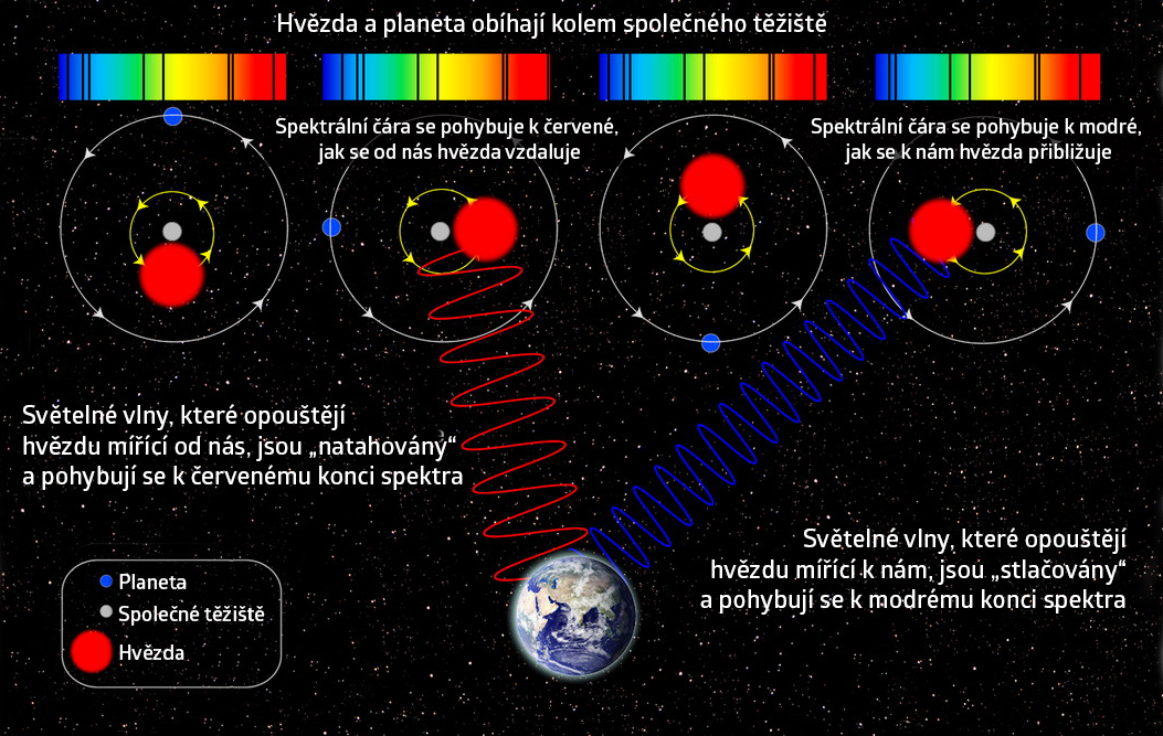 V důsledku fyzikálních zákonů planeta také při svém pohybu stálicí pravidelně „cloumá“ a popsaný pohyb je možné za jistých okolností ze Země zaregistrovat. Podélná komponenta daného cloumání se projevuje posuvem spektrálních čar pocházejících od hvězdy, zatímco příčná komponenta naopak odpovídá změně její polohy. Citlivé přístroje umožňují zmíněné rozdíly měřit a analyzovat. Z tzv. křivky radiálních rychlostí či z vývoje astrometrické polohy se dá opět odvodit perioda oběžnice.