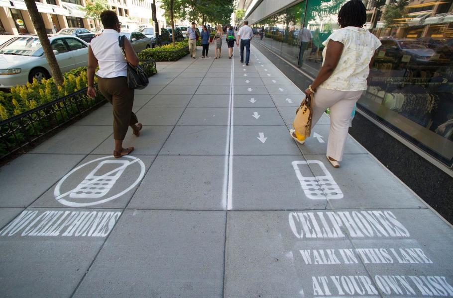 Jak se válčí se „smombies“: Vyhrazeným pruhem na chodníku, zámkem i pokutou