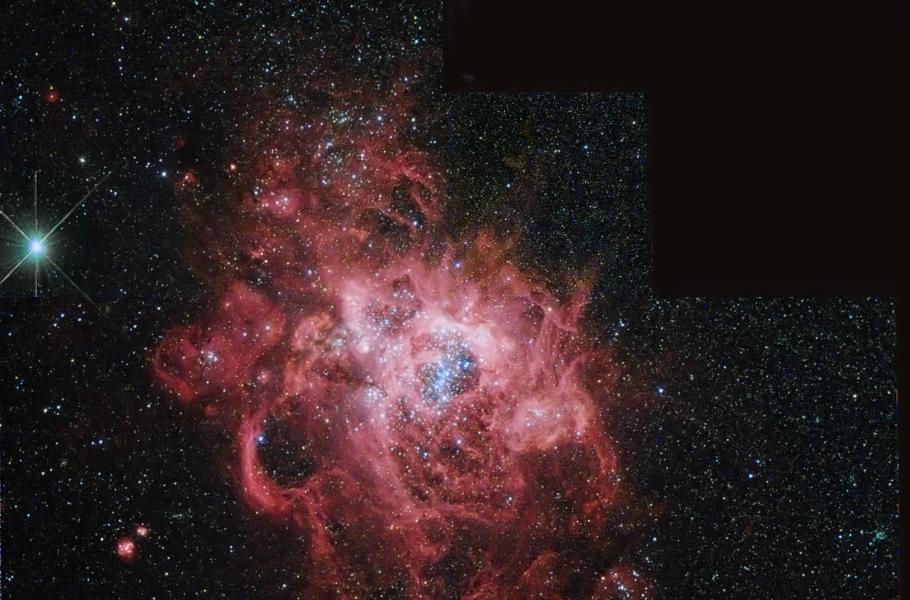 Oblak plynu NGC 604 v galaxii M33 je tak velký, že by v něm mohlo vzniknout dost stálic i na kulovou hvězdokupu.
