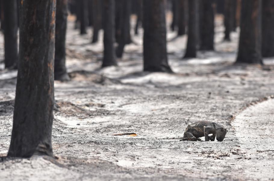 Některá zemřela ve skupinkách, jiná sama, ale vidět jsou úplně všude. Vytvářejí tak hrozivou mozaiku zmaru, o to drásavější, že sestává z malých bezbranných tvorů. U nedalekého stromu leží tělo mladého koaly o velikosti novorozence, jenž se ze všech sil snažil přežít, ale chyběly mu síly: Pokoušel se uniknout ohni na slabých packách, protože zadní končetiny měl již spálené. Nakonec vyčerpáním padl do hlíny a dostihl ho požár. Stejně jako tisíce dalších.