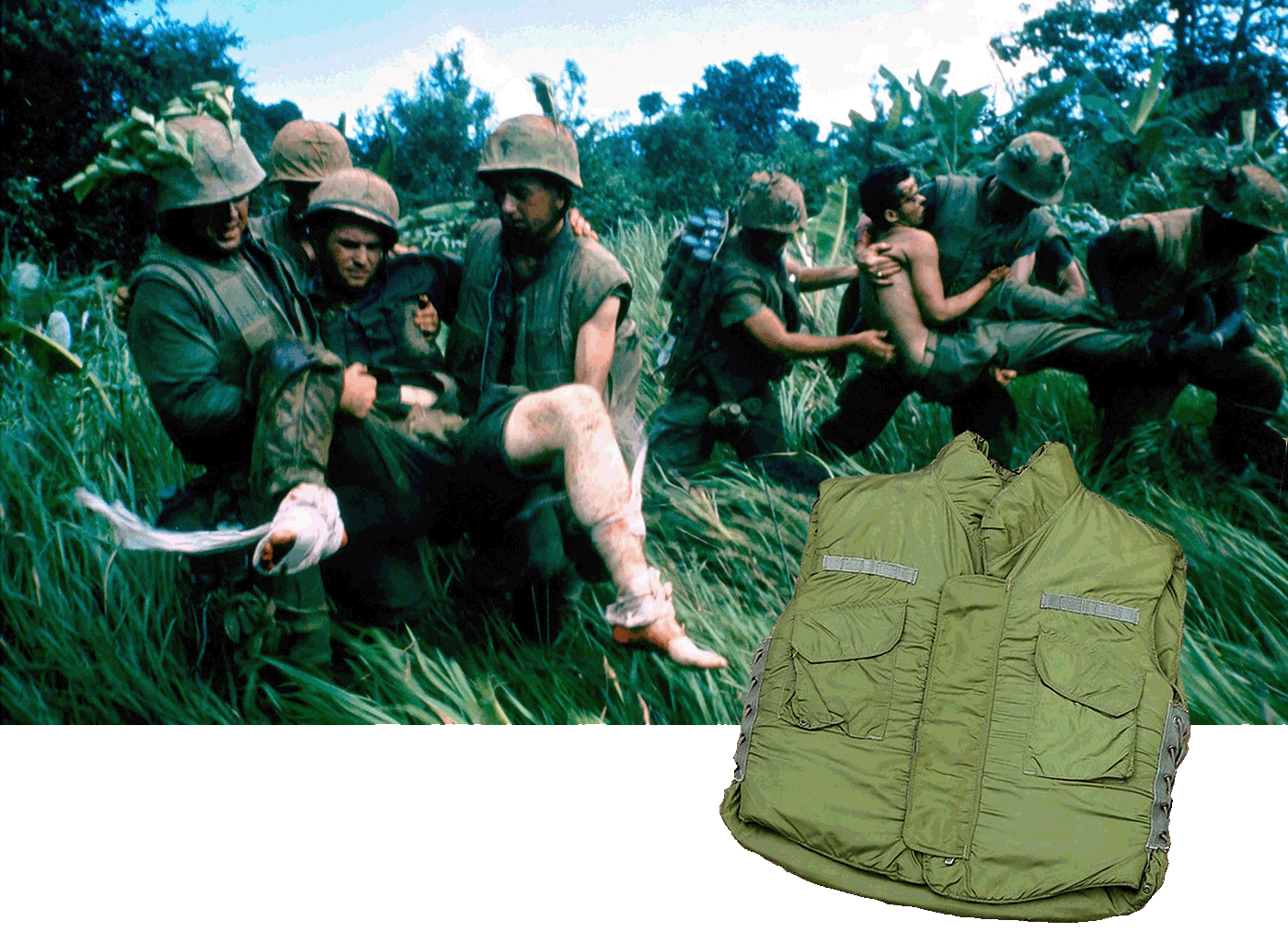 Prvního nasazení jako balisticky odolné tkaniny se aramid dočkal v průběhu vietnamské války u amerických jednotek, avšak v omezených počtech. Stále převládal nylon a sklolaminát. Doslova boom aramidů v kombinaci s novými panely z lisovaného keramického prášku nastal po roce 1983 se zavedením programu osobní balistické ochrany pro pozemní síly (Personnel Armor System for Ground Troops – PASGT). Tento nový typ vest a přileb, už s maskovacím potiskem, byl nasazen během operací v Grenadě (1983), Panamě (1989) či během války v Perském zálivu (1990–1991).