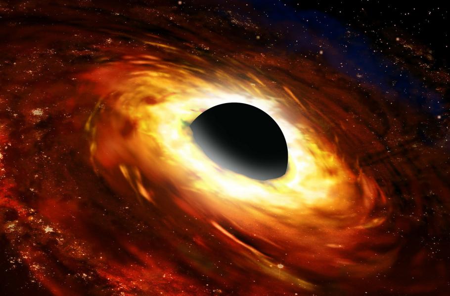 K nejteplejším místům ve vesmíru patří akreční disky okolo černých děr. (ilustrace: Wikimedia Commons, NOIRLab, P. Marenfeld, CC BY 4.0)