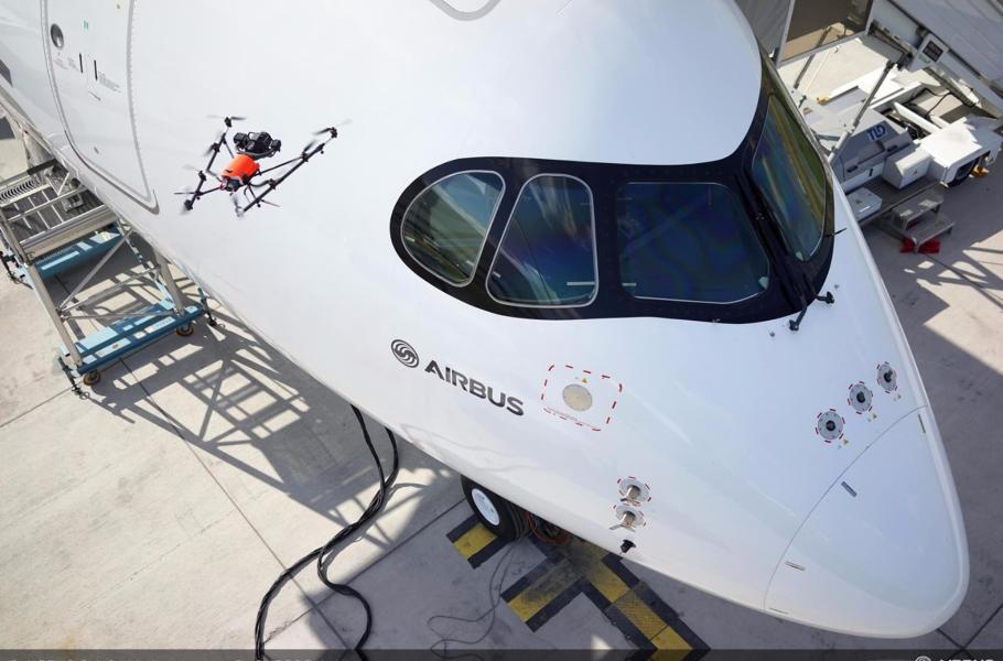 V Airbusu si pro tento účel upravili drony Falcon 8. Nesou kamery Intel RealSense pro inteligentní navigaci kolem složitého tvaru letadla, a také 42-megapixelevou kameru pro sběr dat. Během typické kontroly letouny drony nafotí kolem 150 snímků, z nichž si pak kontroloři kvality sestaví 3D model letadla, který pečlivě zkontrolují.