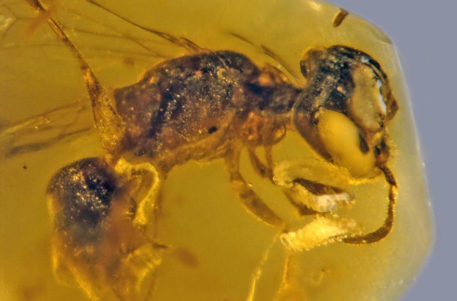 V myanmarském jantaru objevili vědci oregonské univerzity prastarou včelu z období střední křídy. Pravčela žila zhruba před 100 miliony let