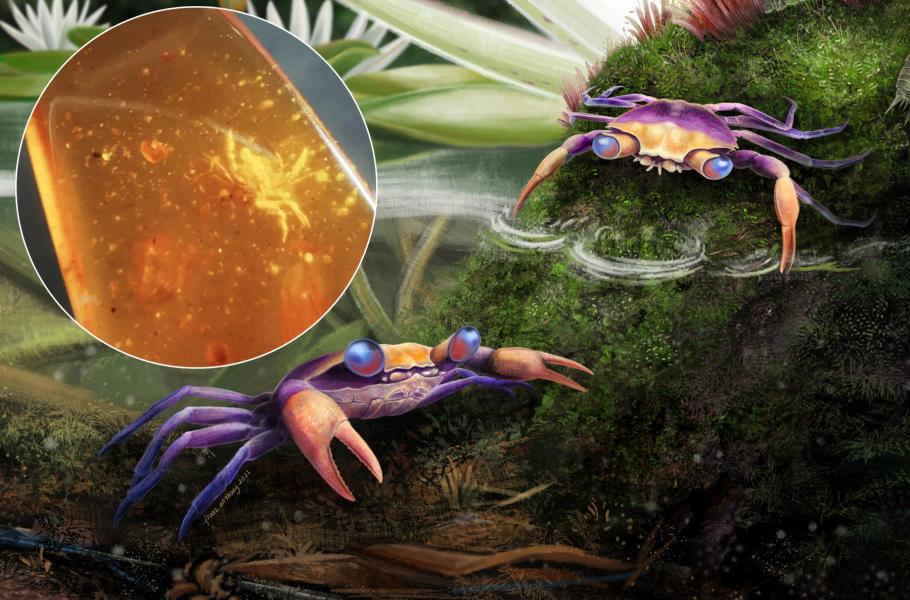 Vůbec poprvé vědci objevili kompletně zachovalého kraba zkamenělého v jantaru. Tento dokonale zachovalý korýš, který pochází z období křídy, může patřit mezi nejstarší zástupce krabů obývajících sladkovodní prostředí