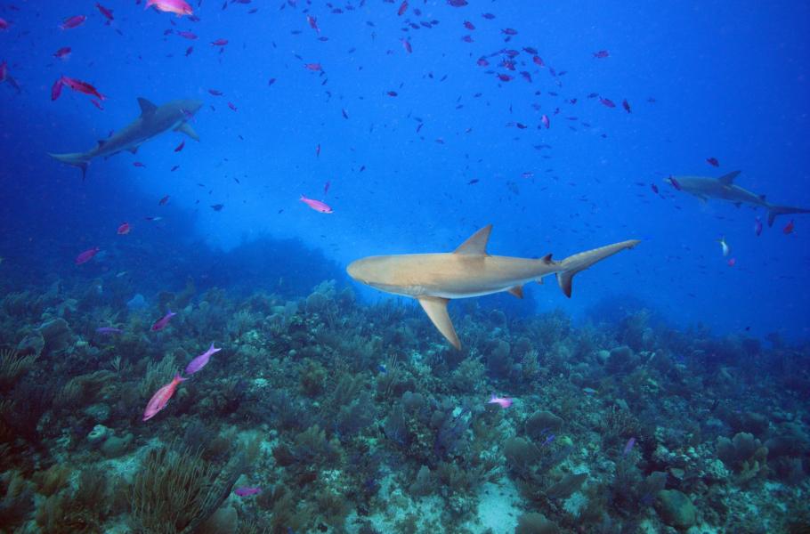 Teď visím vedle Honzy, svého syna a spolehlivého buddyho, nad modrou hlubinou a čekám. Na hraně viditelnosti se pohnulo několik mohutných stínů, které zvolna stoupají vzhůru, aby si prohlédly, co se jim to vznáší nad hlavami. Velcí žraloci Perezovi (Carcharhinus perezii), určitě největší, jaké jsme na Jardínách viděli. V anglickém názvosloví se jim říká „žraloci karibští útesoví“. Snažím se dostat je do hledáčku fotoaparátu, ale i v tenkém neoprenu jsem proti nim hrozně neohrabaný.