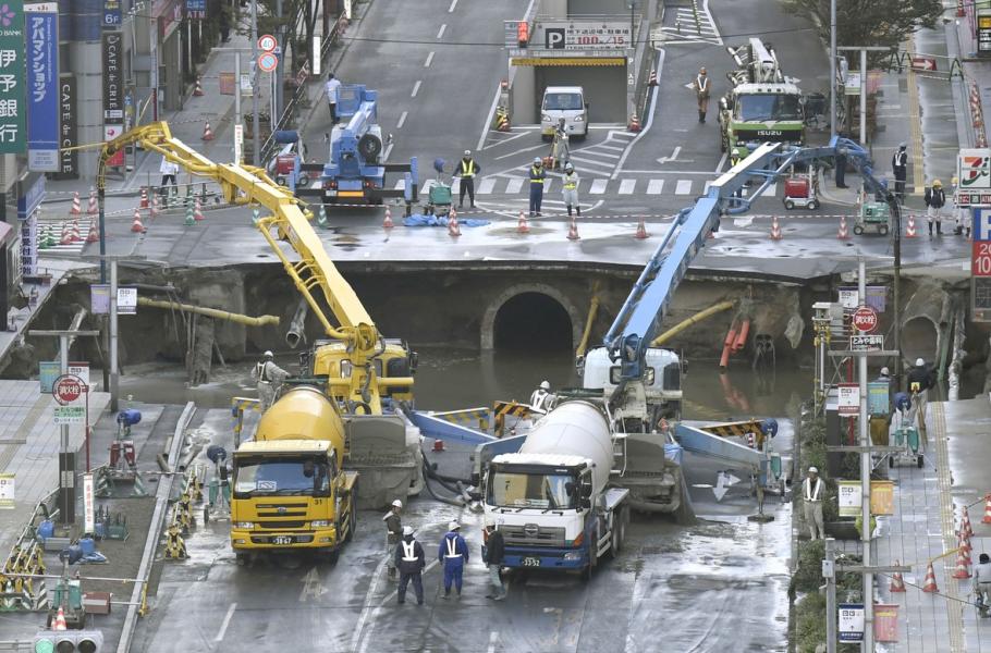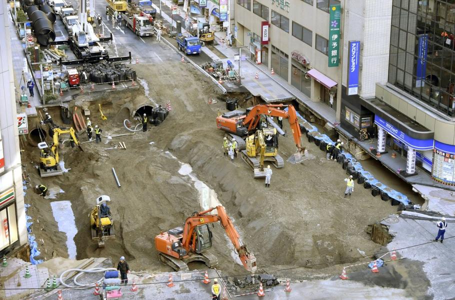 V japonském městě Fukuoka se 8. listopadu propadla část křižovatky. Kráter 30 metrů dlouhý, 27 metrů široký a 15 metrů hluboký vznikl jako následek podzemních prací při budování tunelu metra. Během pouhých sedmi dnů ale není po havárii ani památky. Jak dlouho by asi podobná oprava trvala v Česku? Sedm týdnů? Sedm měsíců? Nebo snad sedm let?