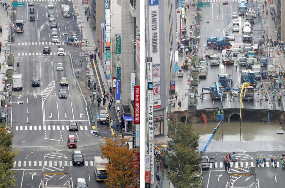 Jen sedm dnů! Tak dlouho Japoncům trvalo odstranit následky obřího závrtu
