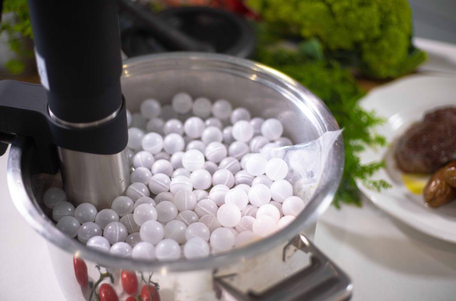 Do jakéhokoliv hrnce nalijete vodu a necháte přístroj, aby ji temperoval na doporučenou teplotu. Mezitím si připravíte jídlo do uzavíratelného sáčku. Ty jsou dodávány s přístrojem. Nebo můžete použít speciální fólii Sous Vide Foil 2805, kterou zatavíte ve vakuovačce Vacuum Sealer. Díky vakuování se odstraní nechtěné vzduchové bubliny, které by bránily symetrickému prohřátí ze všech stran. Navíc veškeré ingredience zůstanou na požadovaném místě a jejich chutě se vzájemně propojí.