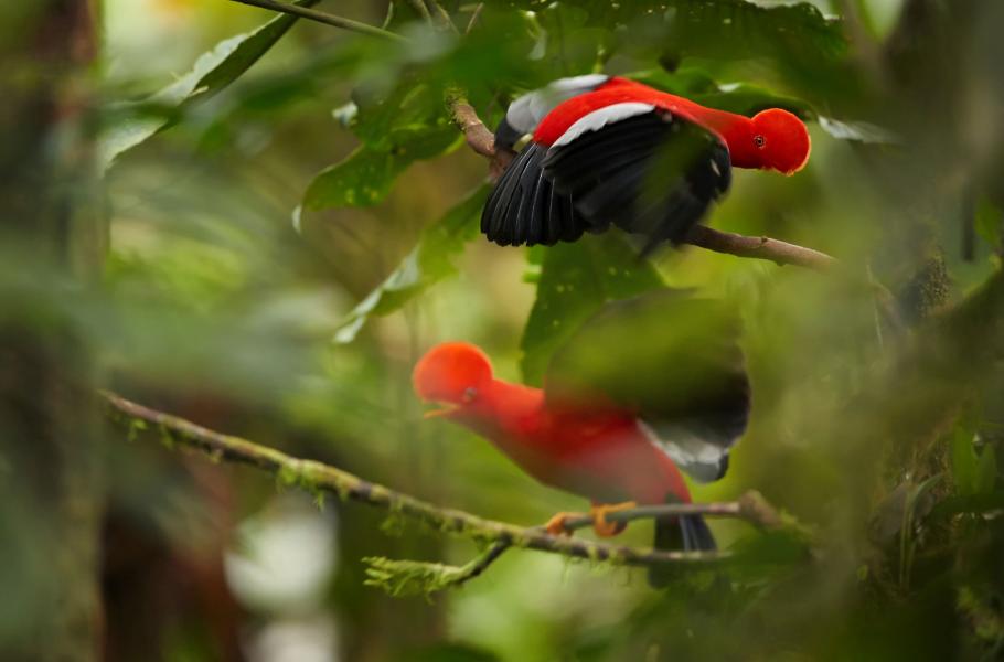 Skalňák andský je národním ptákem Peru. Tok je pro samce tohoto druhu tak náročný, že se nijak nepodílí na výchově potomstva. Všechnu energii totiž spotřebují na získání partnerky. (foto: Wikimedia Commons, Ricardo Sánchez, CC BY 2.0)