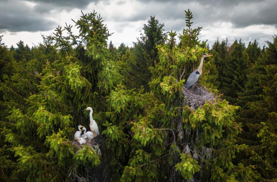 Hnízdící volavky v korunách stromů - 1. místo v kategorii Příroda.