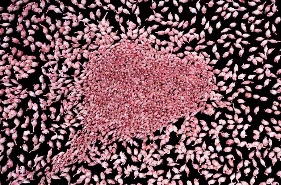 Hejno plameňáků se seskupilo a vytvořilo na hladině jezera Bogoria v západní Keni útvar, který připomíná srdce. Chtějí nám růžový jedinci něco sdělit?