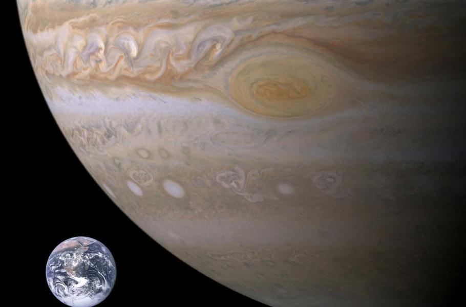 Jupiter je nejen nejvyšším z bohů římského bájesloví, ale také opravdovým králem mezi planetami. Vždyť jde o jedinou z planet, která může svojí hmotností alespoň trochu konkurovat Slunci