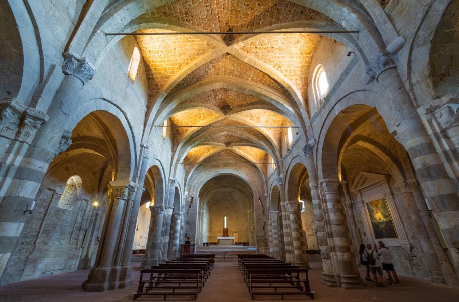 Za zmíněným archivem vybíhají z náměstí dvě uličky a levá z nich se brzy promění ve venkovskou stezku lemovanou vinicemi. Z bukolické idyly se pak zčistajasna vynoří impozantní katedrála, pomyslně střežící výhled na okolní pahorky s etruskými hrobkami. Vyrostla v 11. století pod patronátem tehdejšího papeže, který v Sovaně kolem roku 1020 přišel na svět jako Hildebrand. Když v roce 1074 usedl na Petrův stolec, přijal jméno Řehoř VII. a dodnes zůstává místním nejznámějším rodákem.