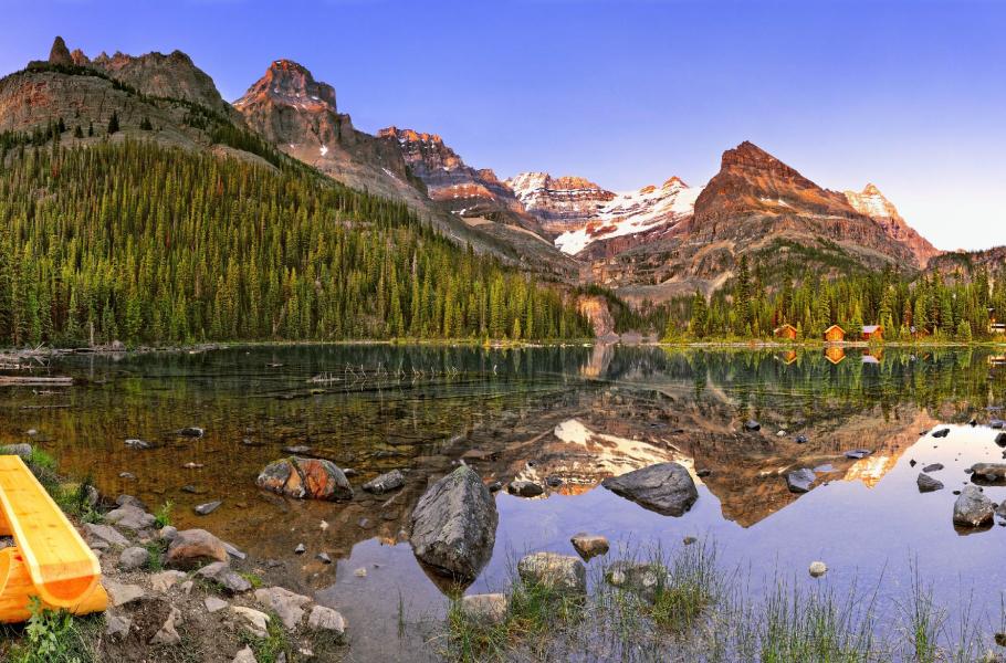 Naproti nad jezerem se začíná do zlatová zabarvovat Mount Shäffer. Hladina se ani nehne a odraz hory je vidět jako ve vyleštěném zrcadle. Musím v sobě tlumit chvíle nepopsatelného štěstí a radosti, abych nenarušil jezerní hladinu. V duchu se ptám, zda má ještě cenu vracet se ke zbylým členům výpravy, když je mi tady tak dobře. Žádní lidé, jen vy, hory a jezera, to je skutečné Yoho. Po „zlaté hodince“ se kolem 6:45 ale stejně vracím zpět do kempu, dávám si teplý čaj a sušenky.