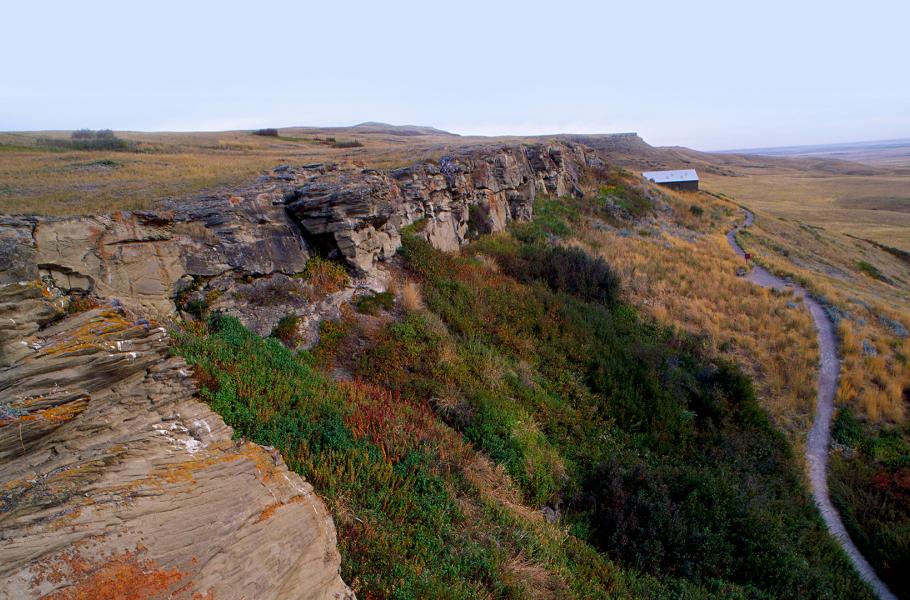 Head-Smashed-In Buffalo Jump představuje jednu z nejstarších, nejrozsáhlejších a nejlépe zachovaných lokalit, jež ilustrují techniky dávných lovců. Masy bizonů se z tamního srázu po tisíce let řítily vstříc smrti, a umožňovaly tak indiánům přežít kruté zimy.