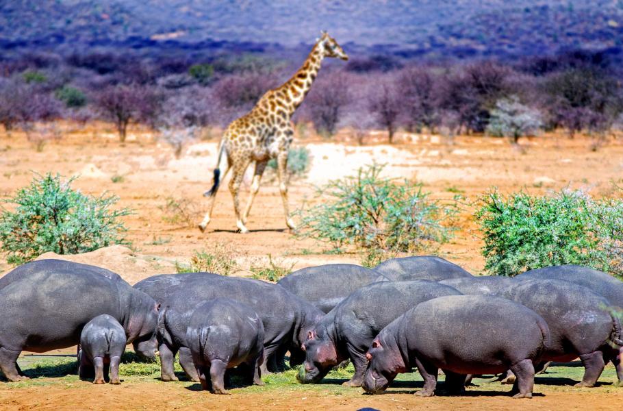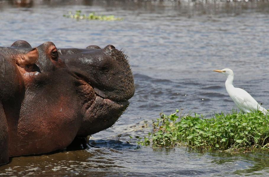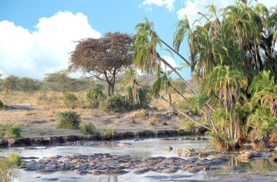 Ve větvích nedalekých stromů posedávají čápi marabu přežraní k prasknutí a o kus dál proti proudu si uprostřed vodního toku hoví stovka hrochů. Tu a tam některý z nich zvědavě připlave na mělčinu k mršinám. Chvíli vzrušeně odfukuje a pak se zahryzne do rozkládajícího se trupu. Urve z něj kus masa či vnitřností a zmizí pod hladinou…