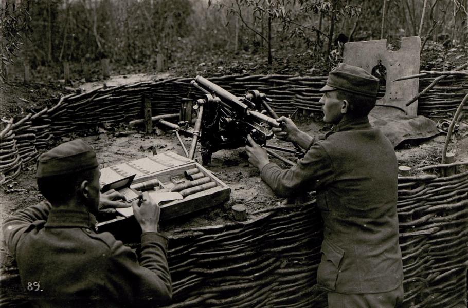 Těžké kulomety se staly ideálním obranným prostředkem proti útokům nepřátelské pěchoty. Jejich obsluhy se ukrývaly v kulometných hnízdech za pytli s pískem či na jinak opevněných pozicích a palba několika zbraní dokázala zmasakrovat stovky postupujících vojáků. Armáda chystající se k ofenzivě se pochopitelně snažila před útokem nepřátelské kulomety vyřadit, ale zpočátku k tomu příliš prostředků neměla.