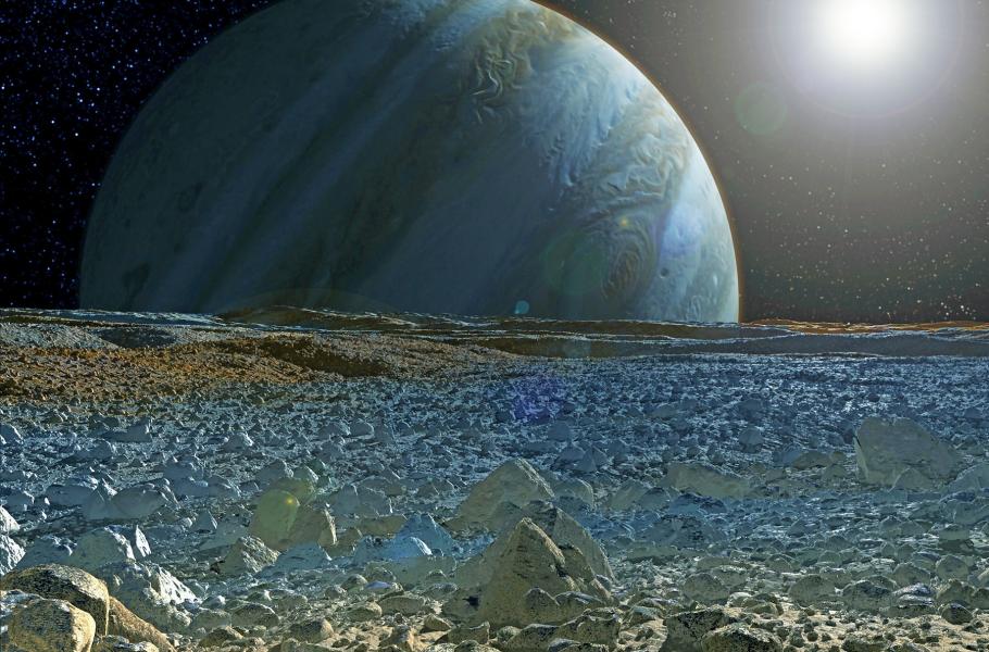 Pod ledovou kůrou Jupiterova měsíce Europa se nachází kapalný vodní oceán. Důkazy poskytl Hubbleův dalekohled, když vyfotografoval výtrysky páry stoupající do výšky až 200 km nad povrch v oblasti jižního pólu. Slapové síly a tření v důsledku gravitačních interakcí s plynným obrem generují podle vědců dostatek tepla k udržení kapalného prostředí. Jak vysvětluje Geoffrey Yoder z NASA, „oceán na Europě se považuje za jedno z nejnadějnějších míst ve Sluneční soustavě, které může tvořit potenciální útočiště života“.