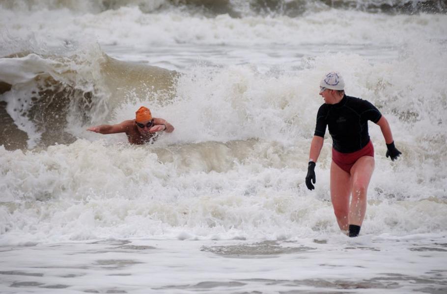 Příchod Nového roku je v nizozemském Scheveningenu tradičně spojen s hromadným plaváním v chladných vodách Severního moře. Do vln se zde každoročně vrhají tisíce otužilců.