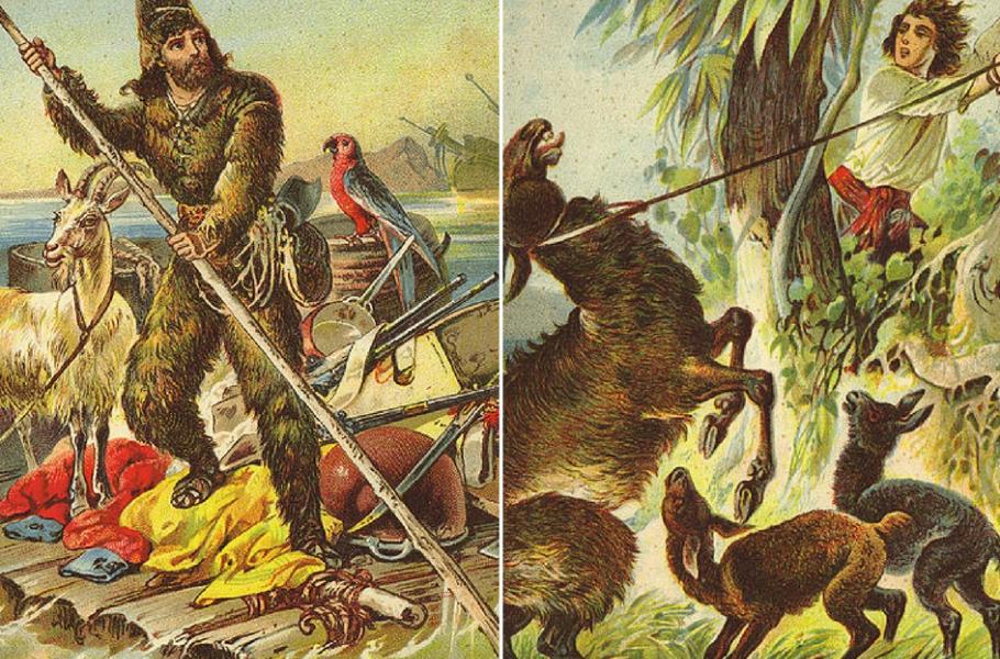 Skrze dopisy a vzpomínky Robinsona Crusoa vyprávěl Defoe řádně komplikovaný příběh muže, který sice přežije třicet let sám na ostrově, jedná se ale jen o „nejdelší“ zastávku v nekonečném proudu dalších dobrodružství. Uteče z domova, ztroskotá v bouři, vypluje znovu, je zotročen Maury, uprchne spolu s otrokem, kterého pak prodá a koupí si za něj výnosnou plantáž a zase ztroskotá, když se s otrokáři plaví do Afriky pro otroky. A právě tady začíná jeho nejznámější příběh muže vyvrženého mimo lidskou společnost, který si musí poradit jen se svým rozumem a Biblí. Ty mu i naznačí, že místní lidojedy nemá právo zabíjet, dokud jimi není napaden, protože „oni nevědí, co činí“. Pořádný houf jich proto zabije až později.