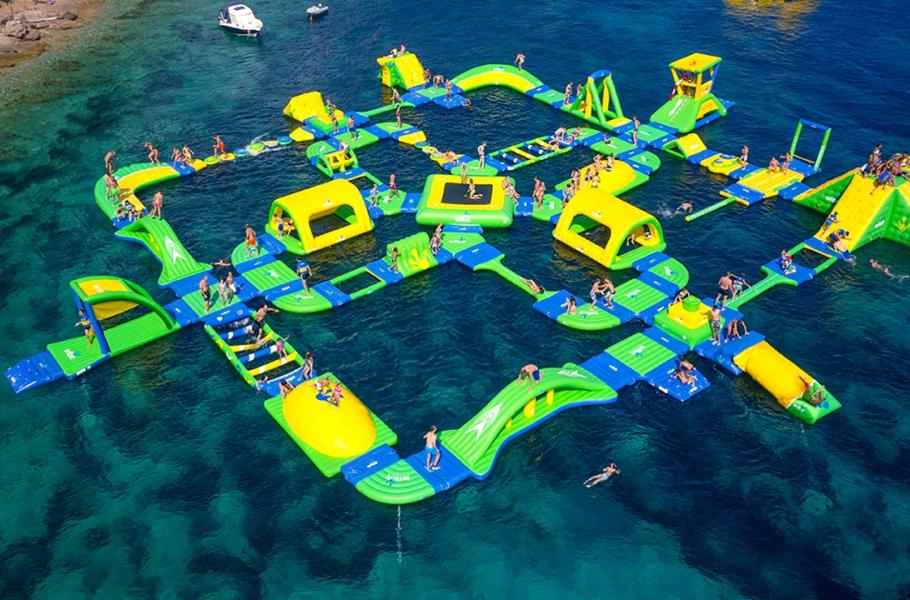 Robert Cirjak a německá společnost zaměřující se na vodní sporty Wibit Sports uvedli již na trh šedesátku úžasných „hřišť“, která plavou na vodě. Náš favorit se nazývá Sports Park 145, přičemž číslo napovídá, kolik se na něm v jednu chvíli může bavit lidí. Atrakce se ovšem přizpůsobily pohodlí návštěvníků: Nacházejí se vždy v párech, aby se dostalo na každého. Nechybí přitom ani věž pro plavčíky.