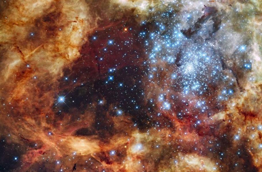 Ve středu hvězdotvorné oblasti 30 Doradus se nachází množství největších, nejžhavějších a nejhmotnějších známých hvězd.
