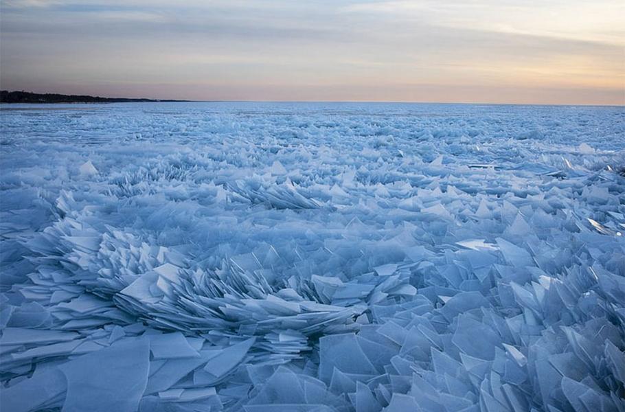 Mráz a jarní tání každoročně připravuje návštěvníkům Michiganského jezera opravdu dechberoucí podívanou.